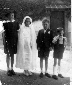 guerre. Yvonne pose avec ses voisins de la cour commune.